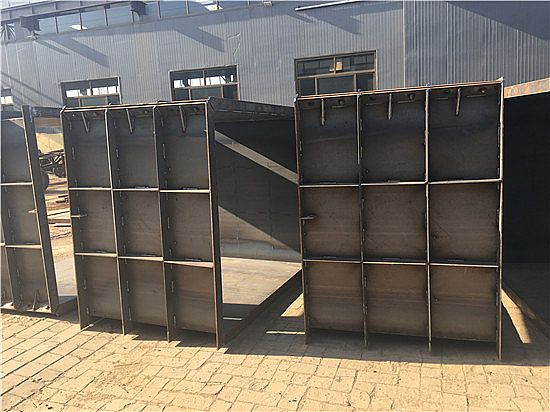 水泥檢查井模具規格:檢查井鋼模具總高為150cm,井口鋼模具高為50cm,井體鋼模具高為100cm,井體內徑100cm,外徑120cm。水泥檢查井模具材質:檢查井鋼模具主板采用4mm鋼板、勒筋為8mm鋼板制作成型。水泥檢查井模具結構:水泥檢查井模具由外模和內模、井口模具、井蓋模具、連接孔組合而成。水泥檢查井模具使用方法:首先將水泥檢查井模具內腔噴一層機油,為了脫模方便,然后將攪拌好的水泥倒入模具中,用振動棒將其振動,等水泥初期凝固便可脫模,約24小時左右,操作非常簡單。